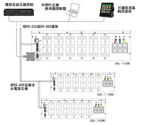 |  | 具有標準RS-232、RS-485串列控制介面及乙太網路遠端控制。可與本公司任何具有串列埠的8路或12路電源組成控制網路。開放RS-232控制通訊協定,滿足第三方控制。透過所附的圖控軟體,可對相聯的電源系統實施管理。 |