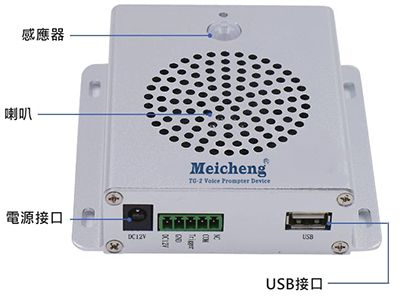 標準內建記憶體4MB,語音播放長度亦可依據客戶需求客製;語音更新方便,插入USB隨身碟即可自動更新語音內容。 |