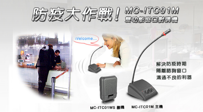 MC-ITC01M 系列 雙功能窗口對講機 週邊應用 (防疫時期窗口的溝通利器):