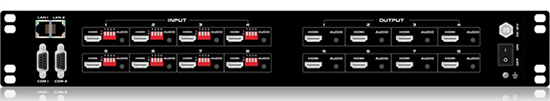 此款設計理念完美解決影音系統中訊號源過多和數模訊號並存的相容難題,並可以最大程度的節省成本,利於系統升級及維護;過壓保護和ESD防靜電技術等多重保護措施,保證設備免收外部衝擊;具備掉電狀態儲存保護、開機自動恢復記憶的功能;同時本矩陣具有強大的網路傳輸和網路管理能力。支援7x24小時不間斷運行;具備網路及 RS-232通訊介面控制,可以方便與個人電腦、中央控制系統等各種遠端控制設備配合使用。