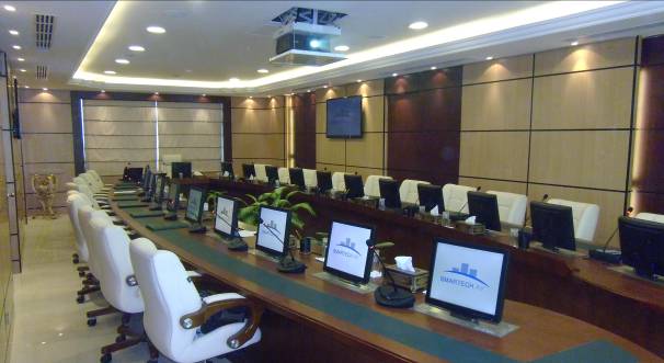 本系統是工作於UHF頻段(在400MHz~ 950MHz 範圍內)的無線會議系統;控制訊號、音頻訊號、單體揚聲喇叭訊號[具開關]皆採用無線方式傳輸[共有四組不同的頻率段,5支天線],全數位控制,無需再費工另行配置電纜線,在訊號覆蓋範圍(室內無障礙空間在半徑≦60米)內可任意移動,使會場佈置便捷靈活,成為即時會議工程的首選,更不會去破壞現有裝修。 |